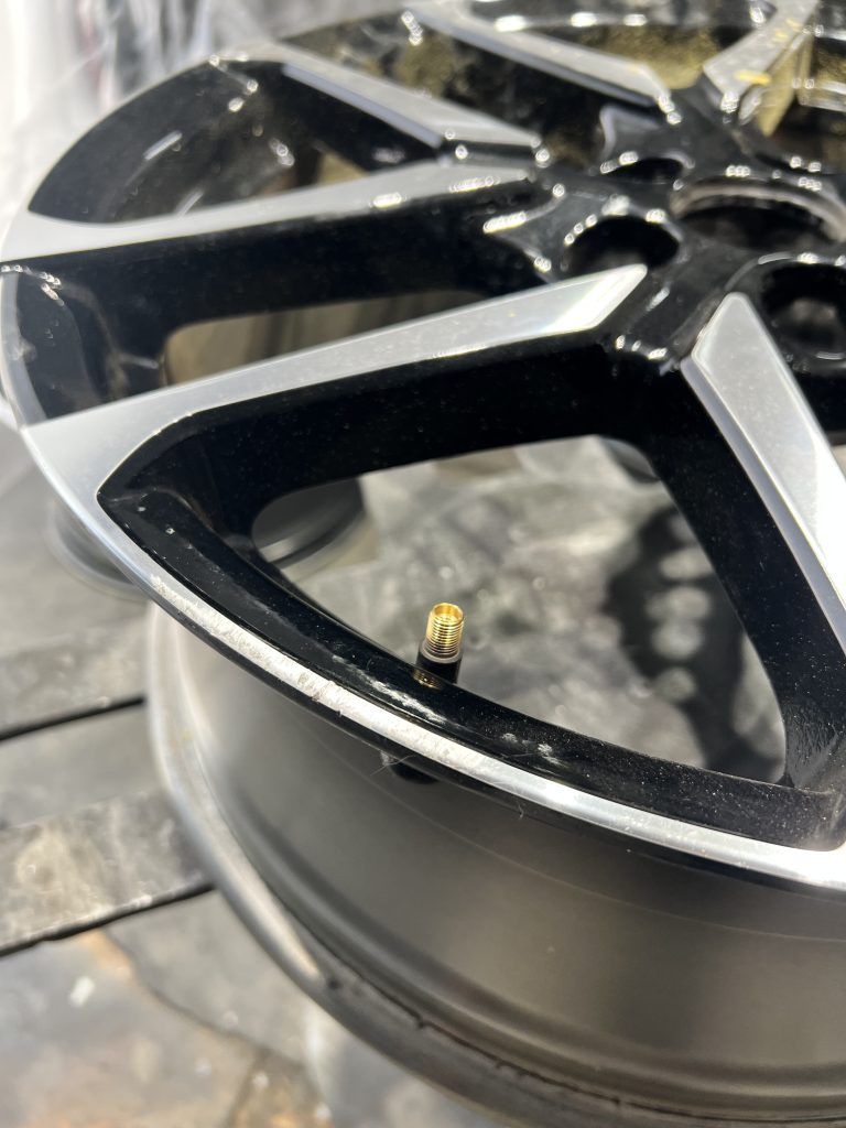 ダイヤカットホイールは他のリペア方法としてコンピュータによる切削ライン(CDの様な細かいライン)を再現する方法がありますが、高額となる為今回は塗装による修理でお受けしました。とは、言っても塗装でのリペアも特殊塗料を使用しての特殊工法ですので充分な仕上がりをみせます。